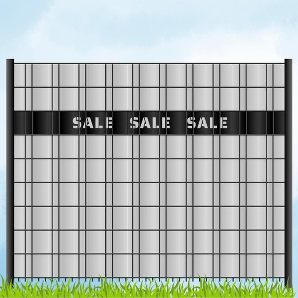 Der Schriftzug SALE SALE SALE wird direkt aus dem Material herausgelasert – eine langlebige, wetterbeständige und elegante Alternative zu klassisch bedruckten Sichtschutzstreifen. Mit einer großen Auswahl an Farbvarianten kannst du deinen Zaun individuell gestalten und perfekt auf dein Corporate Design abstimmen.
