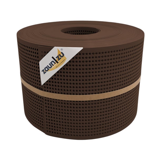 zaun|zu® Sichtschutzstreifen Rille Gelocht 30 Prozent PP Streifen Braun 50m