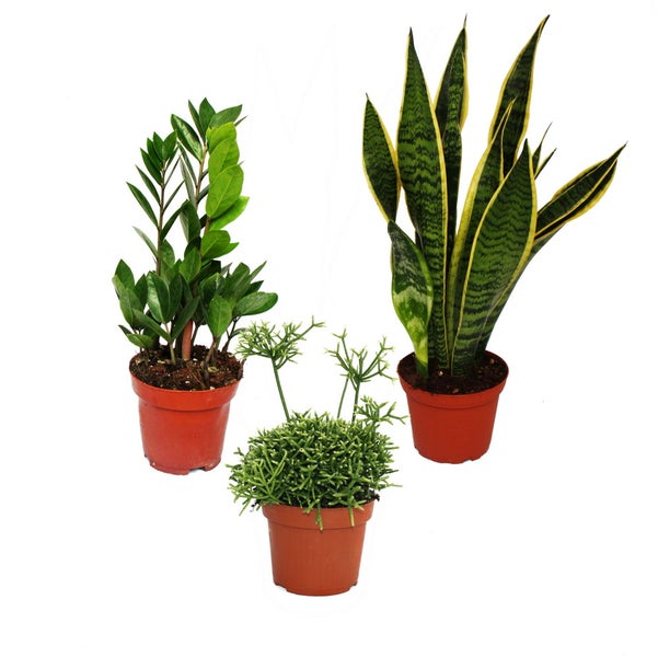 Zimmerpflanzen-Trio Pflegeleicht Set mit 3 pflegeleichten Pflanzen Sanseveria Zamioculcas Rhipsalis
