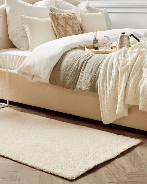 Hellbeiger Teppich mit Kuschelfaktor. Dieser herrlich weiche und kuschelige Hochflorteppich bringt Gemütlichkeit, Wärme und klassische Eleganz in Ihr Heim. Der tuftete Teppich aus pflegeleichten, hochwertigen Materialien besteht aus dicken, hellbeigen Fäden, wodurch ein wunderschöner Effekt entsteht. Der rechteckige Teppich lädt zum Kuscheln ein und wird Sie mit seiner einzigartigen Optik begeistern. Details: Typ Shaggy. Farbe: Beige. Farbton: Hellbeige. Material: Stoff. Material: Polyester. Rückseitenmaterial: Baumwolle. Zusammenstellung: 100% Polyester. Form: Rechteckig. Rutschfeste Unterseite: Nein. Stoffgewicht: 700 g/m2. Muster: Ohne Muster. Herstellungsmethode: Getuftet. Abmessungen: Florhöhe: 2 cm. Breite: 80 cm. Länge: 150 cm. Gewicht: 2 kg. .Sie kaufen: 1 x Teppich. Produktvorteile: Geeignet für Fussbodenheizung, Herrlich weich, Erzeugt Wohlfühlcharakter in jedem Raum, Qualitativ hochwertiges Material, Präzise ausgearbeitete Details. Montage: Benötigt keine Montage. Zusatzinformationen: Der Artikel könnte Haare verlieren. Dies ist ein normaler Vorgang und stellt keinen Qualitätsmangel des Produkts dar. Da der Teppich handgewebt ist, können kleine Farb-, Muster-, bzw. Grössendifferenzen auftreten. Diese Unterschiede stellen jedoch keinen Produktfehler dar. Der Artikel benötigt einige Zeit, bis er seinen ursprünglichen Zustand erreicht hat – daher sollte er so schnell wie möglich ausgerollt werden und innerhalb von 72 Stunden seine vollständige Größe wieder erreichen. Für einen optimalen Effekt sollte man die Teppichkanten mit schweren Gegenständen fixieren. Pflegeanleitung: 1.Staubsaugen einmal pro Woche ist ausreichend, um den Teppich sauber und gepflegt zu halten. Wir empfehlen dazu einen Staubsauger mit flacher, weicher Bürste und die Einstellung von mittlerer Saugleistung. Saugen Sie Ihren Teppich immer in Florrichtung ab. 2.Soweit das Format dies zulässt, drehen Sie den Teppich alle sechs Monate um 180 Grad. So erhalten sie eine gleichmäßige Abnutzung und vermeiden Sie Verbleichen der Farben durch Sonneneinstrahlung. 3.Entfernen Sie Flecken umgehend. Flüssigkeiten werden mit einem saugfähigen, nicht färbenden Baumwolltuch aufgenommen. Arbeiten Sie vom Rand nach innen und verreiben Sie den Fleck nicht. 4.Bei festem Schmutz können Sie die losen Schmutzteile vorsichtig abkratzen. Danach wird die Stelle mit klarem, lauwarmem Wasser abgetupft. Benutzen Sie dazu ein sauberes nicht färbendes Baumwolltuch sowie einen Fleckentferner speziell für Teppiche. Bitte befeuchten Sie den Teppich dabei nicht zu stark. Falls der Fleck hartnäckig sein sollte, wenden Sie sich bitte an ein Fachgeschäft für Teppichreinigungen. 5.Es wird empfohlen den ausgepackten Teppich mindestens ein paar Stunden (am besten ein oder zwei Tage) zu lüften. Dies ermöglicht den natürlichen Geruch des Materials, aus dem das Produkt gefertigt wurde, zu mildern.