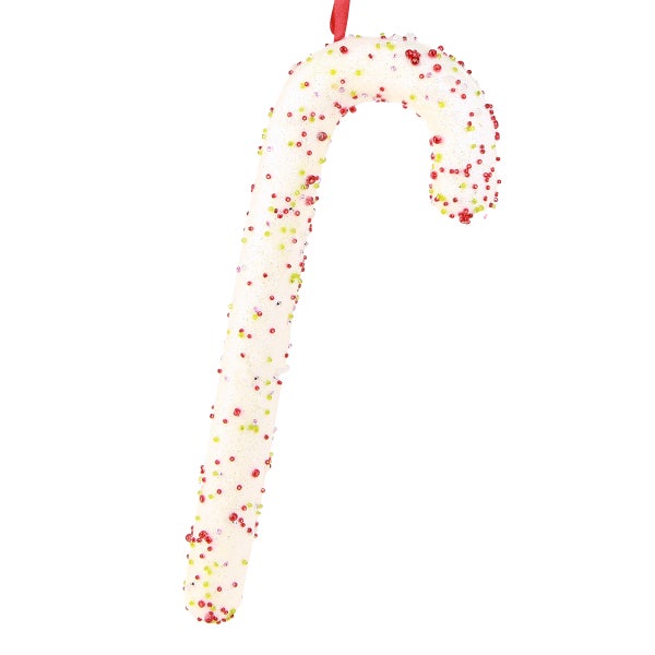 Verleihen Sie Ihrer weihnachtlichen Dekoration einen Hauch von Glanz und festlichem Charme mit diesen glitzernden Zuckerstangen-Anhängern. Liebevoll gestaltet, bilden sie einen perfekten Hingucker, der Weihnachtsbäume, Fensterrahmen oder Türkränze auf einzigartige Weise in Szene setzt. Jede Zuckerstange ist präzise mit schimmernden, dekorativen Elementen verziert, die an eine feine Zuckerglasur und bunte Streusel erinnern. Die Kombination aus funkelnden Details und hochwertigem Kunstmaterial sorgt für langlebige Weihnachtsfreude, die Jahr für Jahr begeistert. Gefertigt aus robustem, synthetischem Material und mit einer glänzenden Oberfläche versehen, garantieren diese dekorativen Anhänger eine dauerhaft schöne und pflegeleichte Ergänzung für Ihr Zuhause. Die schimmernden Akzente unterstreichen die festliche Atmosphäre und verleihen Ihrer Dekoration eine glamouröse Ästhetik, die den Zauber der Weihnachtszeit einfängt. Dank des praktischen Bands lassen sich die Anhänger mühelos an Weihnachtszweigen oder anderen Dekorationselementen befestigen. Diese vielseitigen Zuckerstangen bieten zahlreiche Dekorationsmöglichkeiten. Hängen Sie sie als funkelnde Highlights an Ihren Christbaum, kombinieren Sie sie mit floristischen Elementen für den Fensterrahmen oder integrieren Sie sie in Türkranzgestaltungen, um einen einladenden Blickfang zu schaffen. Ergänzen Sie Ihre Dekoration mit weiteren funkelnden Produkten aus dem Sortiment von uns für ein harmonisches Gesamtbild voller Eleganz und Glanz. Mit ihrer detaillierten Verarbeitung und dem modernen Design sind diese Zuckerstangen nicht nur ein dekoratives Element, sondern auch eine symbolische Einladung zur festlichen Freude und Besinnlichkeit. Gestalten Sie Ihre Weihnachtsdekoration individuell und kreativ mit dieser glitzernden Ergänzung, die jeden Raum in ein winterliches Glanzstück verwandelt. Bitte beachten Sie: Auf Produktbildern gezeigte Deko-Artikel und Zubehör sind nicht in der Lieferung inbegriffen. Maße (L×B×H): ca. 11cm × 3cm × 30cm Höhe mit Band: ca. 38cm Farbe: Weiß, Bunt Material: Kunststoff, Textil Menge: 4 Stück Anb.Nr.: 024579 EAN: 8720725868441