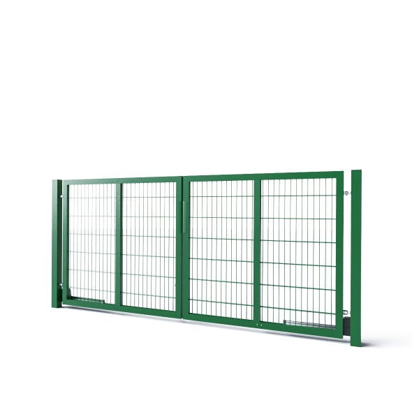 Zweiflügeliges Tor 3,0m breit 1,4m hoch RAL 6005 grün 6/5/6 inkl. Zubehör mit 80x80 Pfosten und Motor