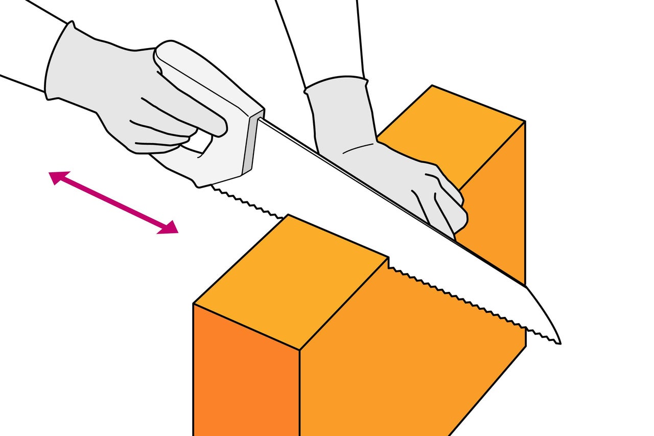 Jetzt geht's an das Zuschneiden der Porenbetonsteine. Zeichne die Steine an und schneide sie passend zu. Das geht am besten mit einer Porenbetonsäge oder einem elektrischen Fuchsschwanz.