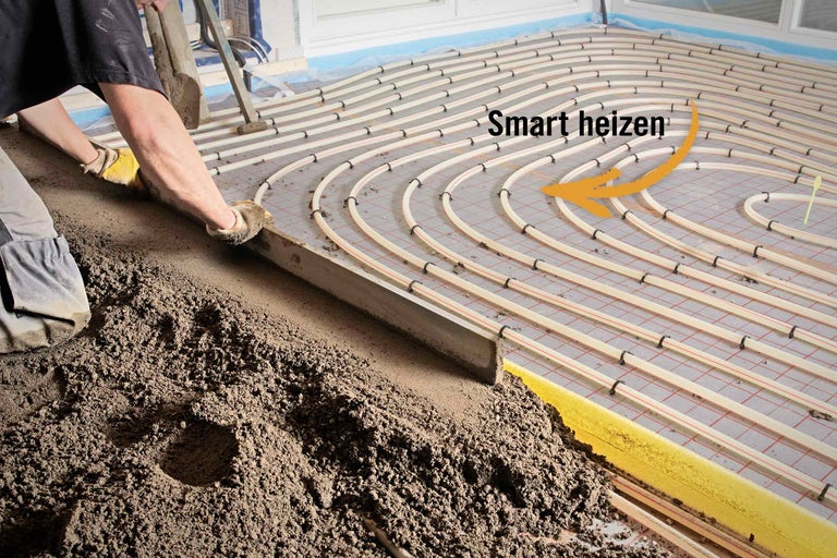 Dann die Nivelliermasse anrühren, ausgießen und verteilen – achte darauf, dass sie für Fußbodenheizungen geeignet ist. Nach dem Trocknen den Bodenverlag verlegen. Nach 2 bis 5 Tagen kannst Du die Heizung nutzen. Bitte beachte die Herstellerangaben zur Nivelliermasse, zum Bodenbelag und ggf. zum Belagkleber.