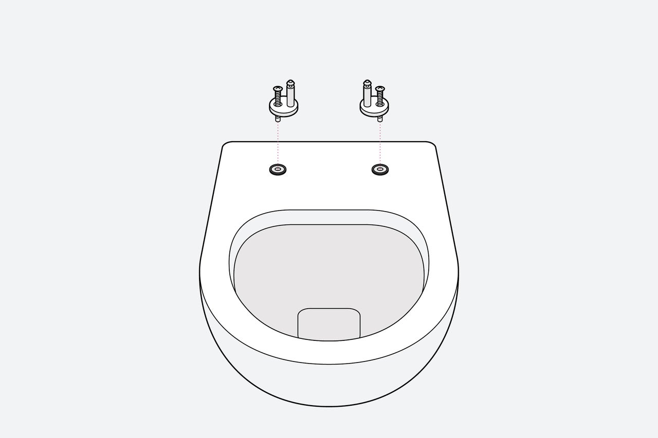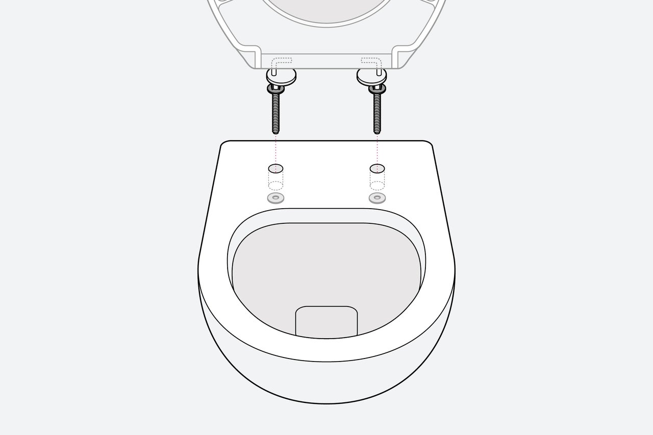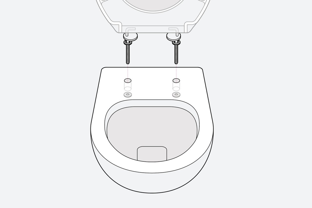 | Von oben verschraubt | moderne WCs | leicht | Montage komplett von oben |