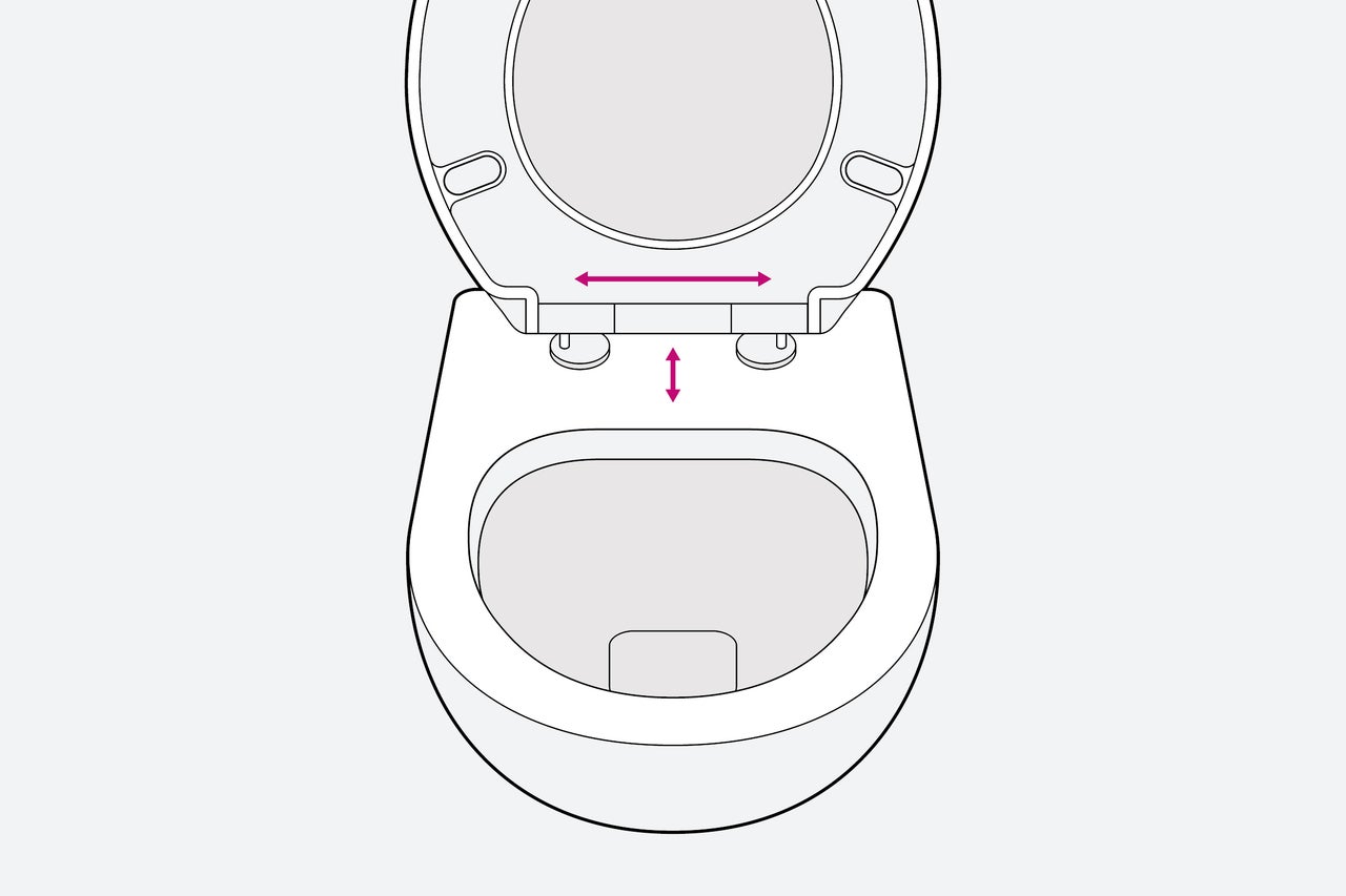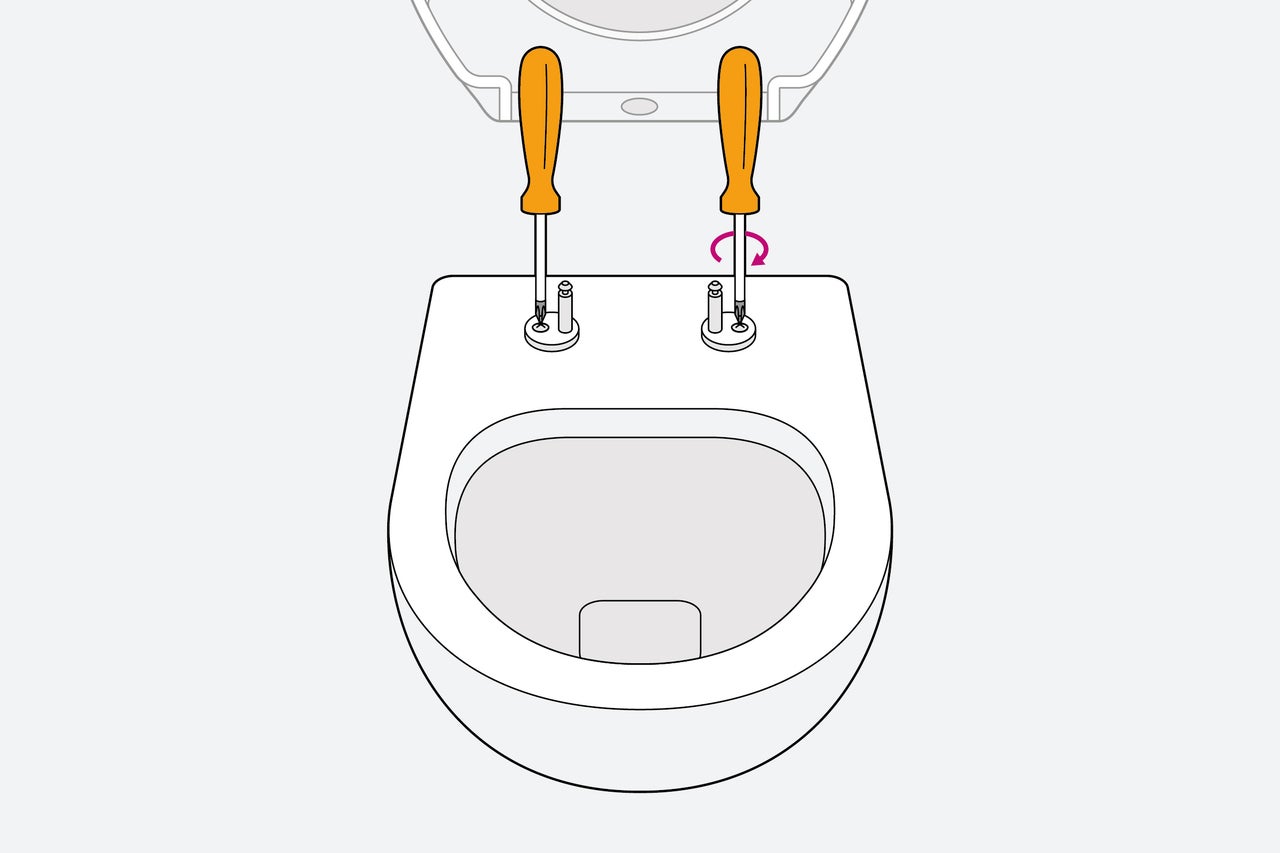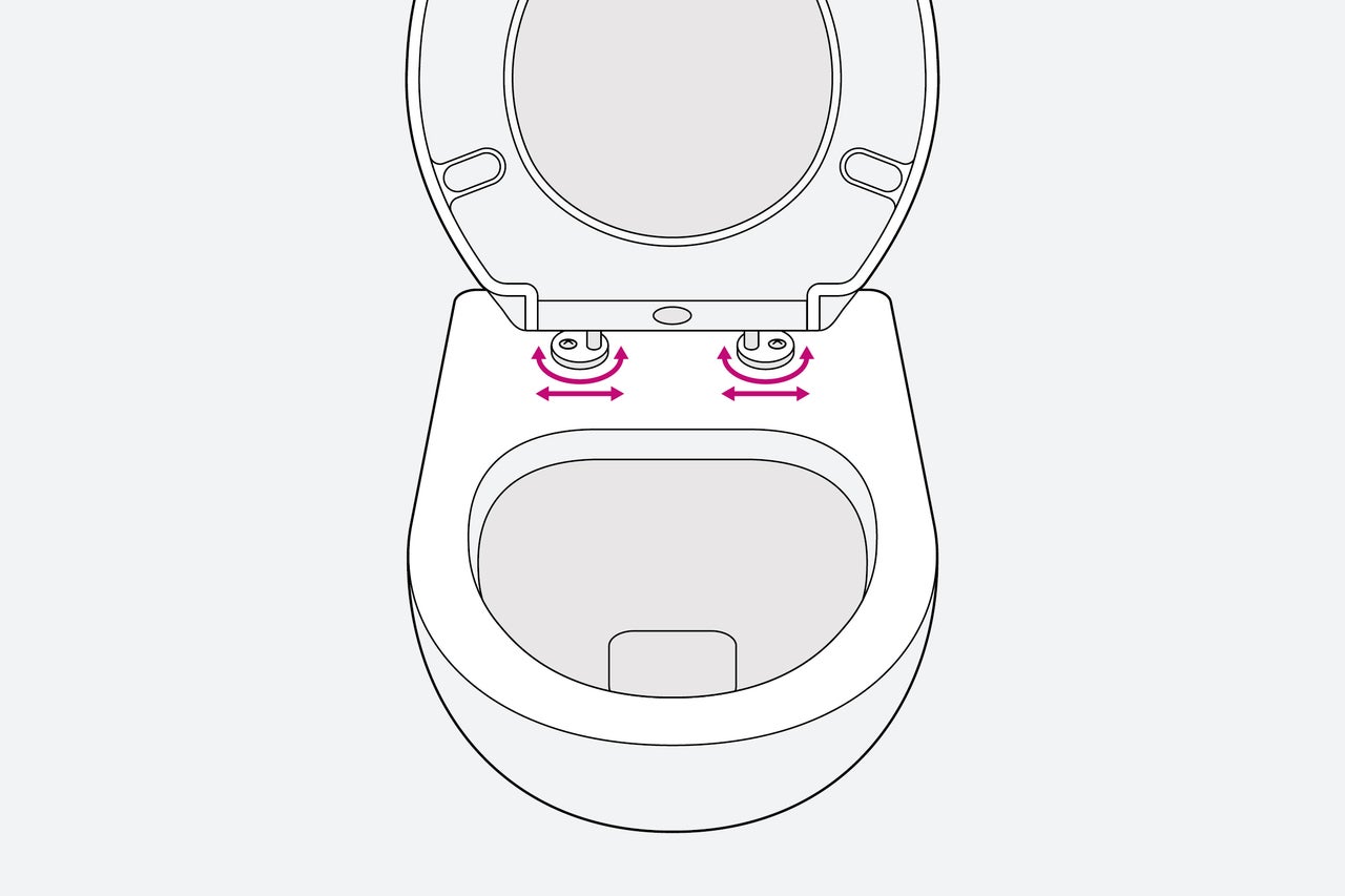 Bei neueren Toiletten wird der WC-Sitz in der Regel von oben montiert. Das erkennst Du an den fehlenden Aussparungen seitlich am Toilettenbecken. Wenn Du einen WC-Sitz von oben montieren möchtest, gehe wie folgt vor: